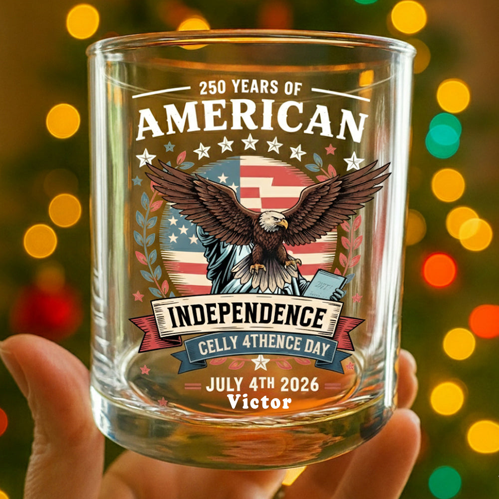 Celebrate America’s Semiquincentennial with the 250 Year Of American Independence Patriotic Whiskey Glass. Crafted for both style and sentiment, this glass honors 250 years of American freedom (1776–2026) with a patriotic design featuring stars, stripes, and commemorative text.