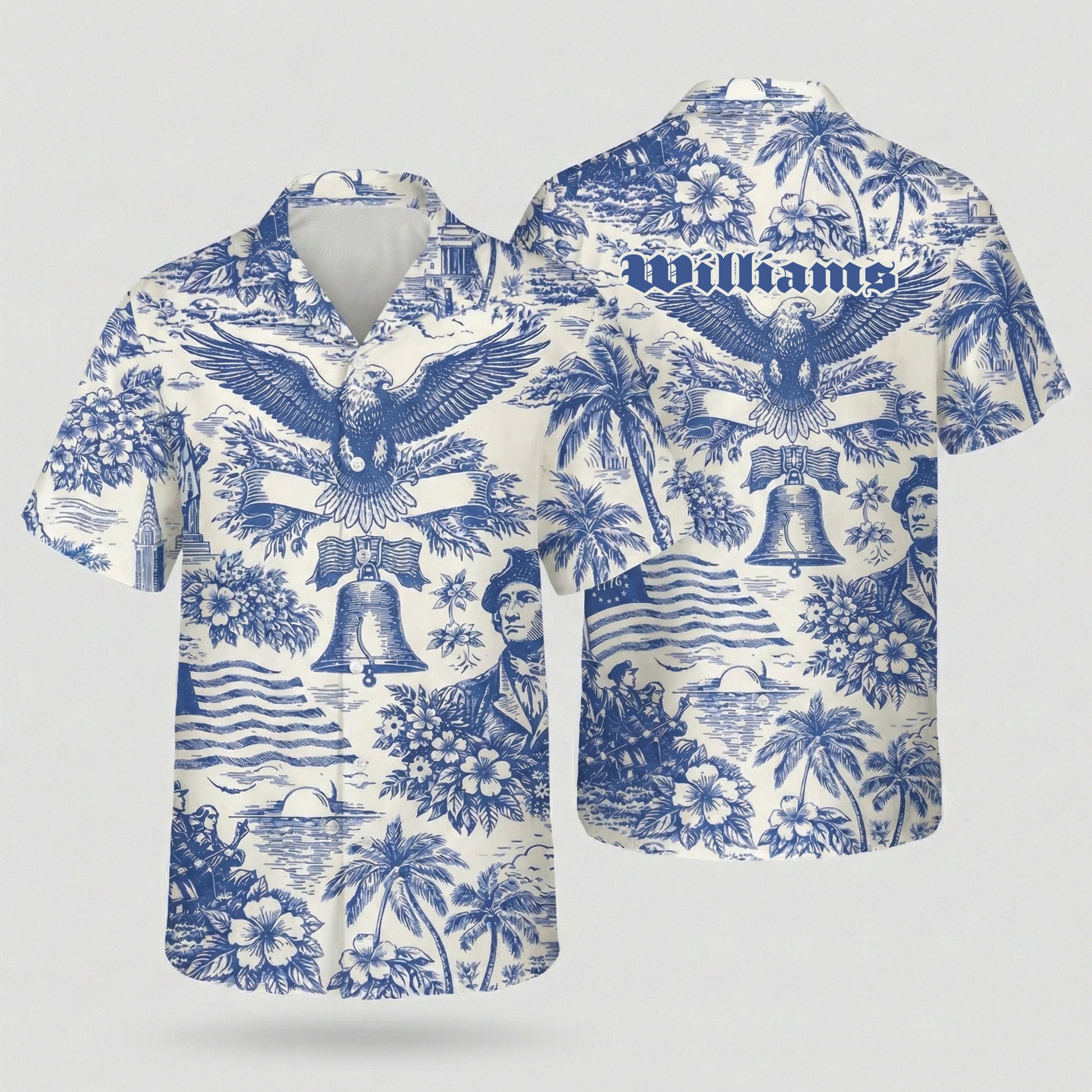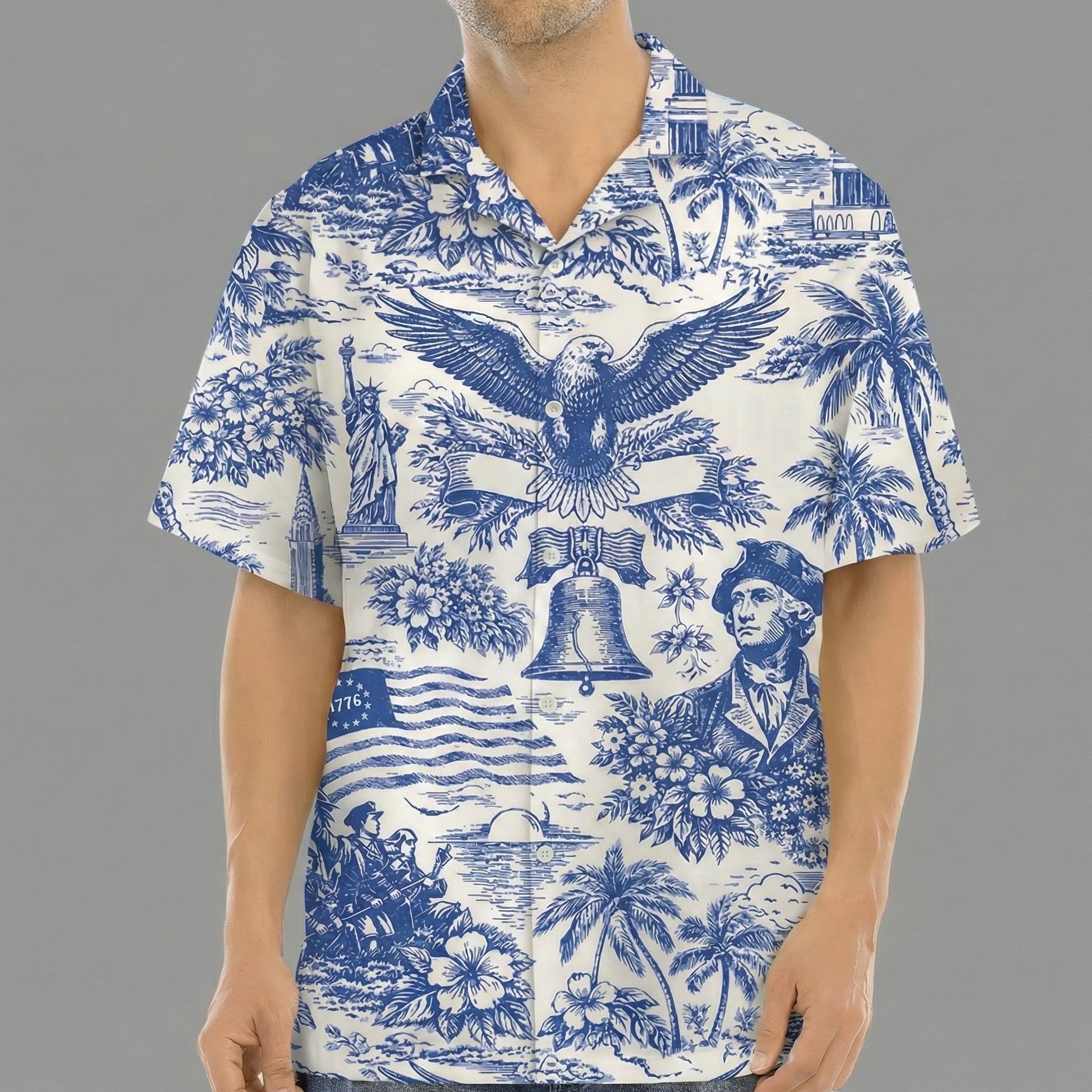 Made from lightweight, breathable fabric, this Hawaiian shirt offers all-day comfort while standing out with its refined and artistic look. Perfect for Fourth of July celebrations, summer events, vacations, or casual outings, it brings a sophisticated twist to traditional patriotic apparel.