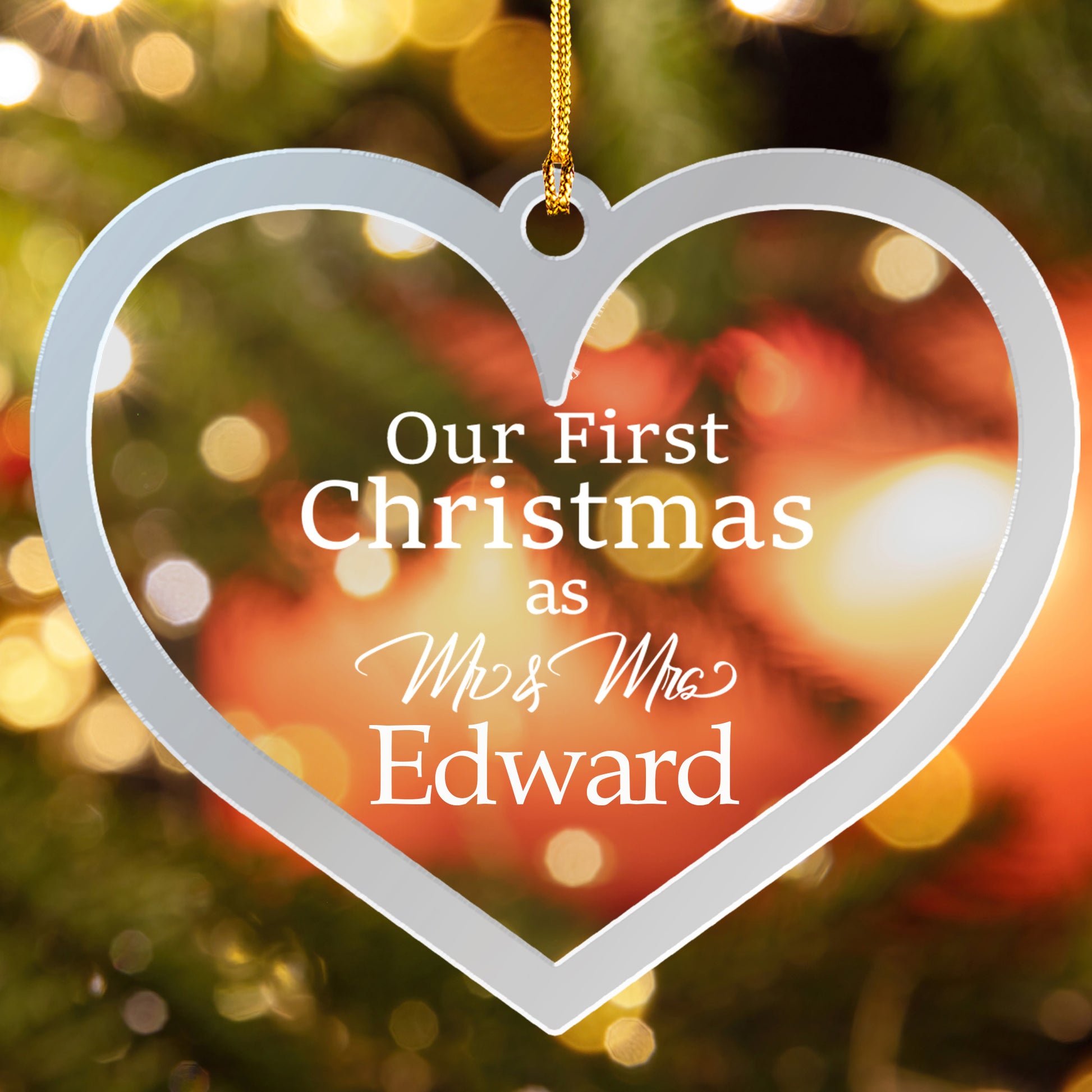Crafted from premium clear acrylic, this heart-shaped ornament radiates light and warmth — just like your love story. Personalize it with your names, engagement date, or a heartfelt message to create a custom ornament that reflects your journey together. As it hangs on your Christmas tree, it shimmers softly, reminding you of that magical “yes” and the dreams you now share.
