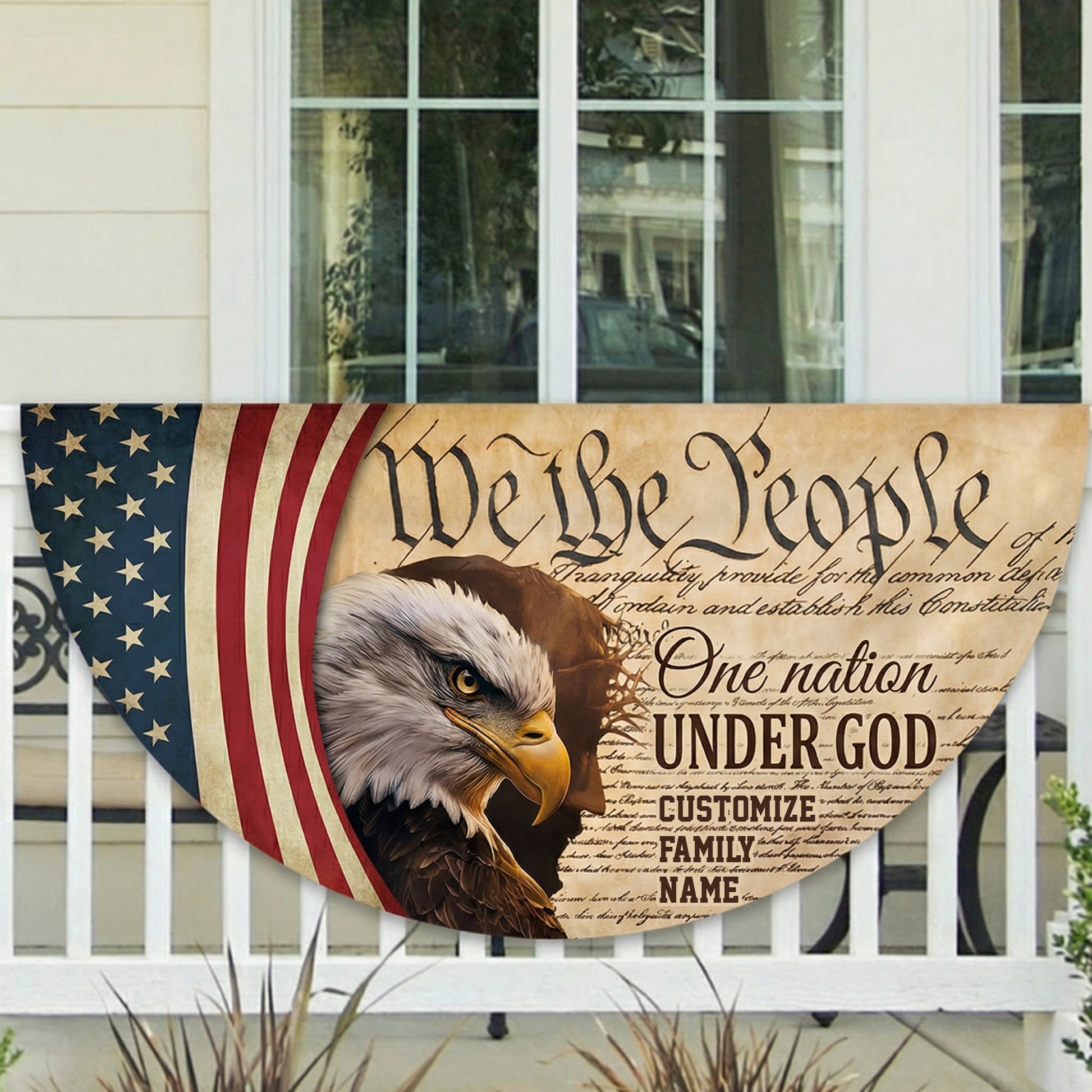 Display your patriotic pride with the Custom Family Name We The People America Non-Pleated Fan Flag. Inspired by the powerful opening words of the U.S. Constitution, this personalized bunting features the iconic “We The People” design along with your custom family name, creating a meaningful decoration that celebrates both American heritage and family identity.