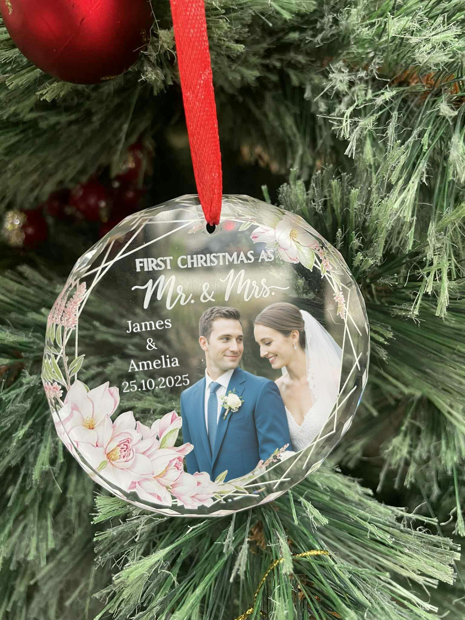 Each piece is printed using high-quality UV technology, ensuring vibrant, lasting color that preserves every precious detail. Lightweight yet durable, it’s perfect for hanging on your Christmas tree, displaying in your home, or gifting to newlyweds who are celebrating their first festive season together.