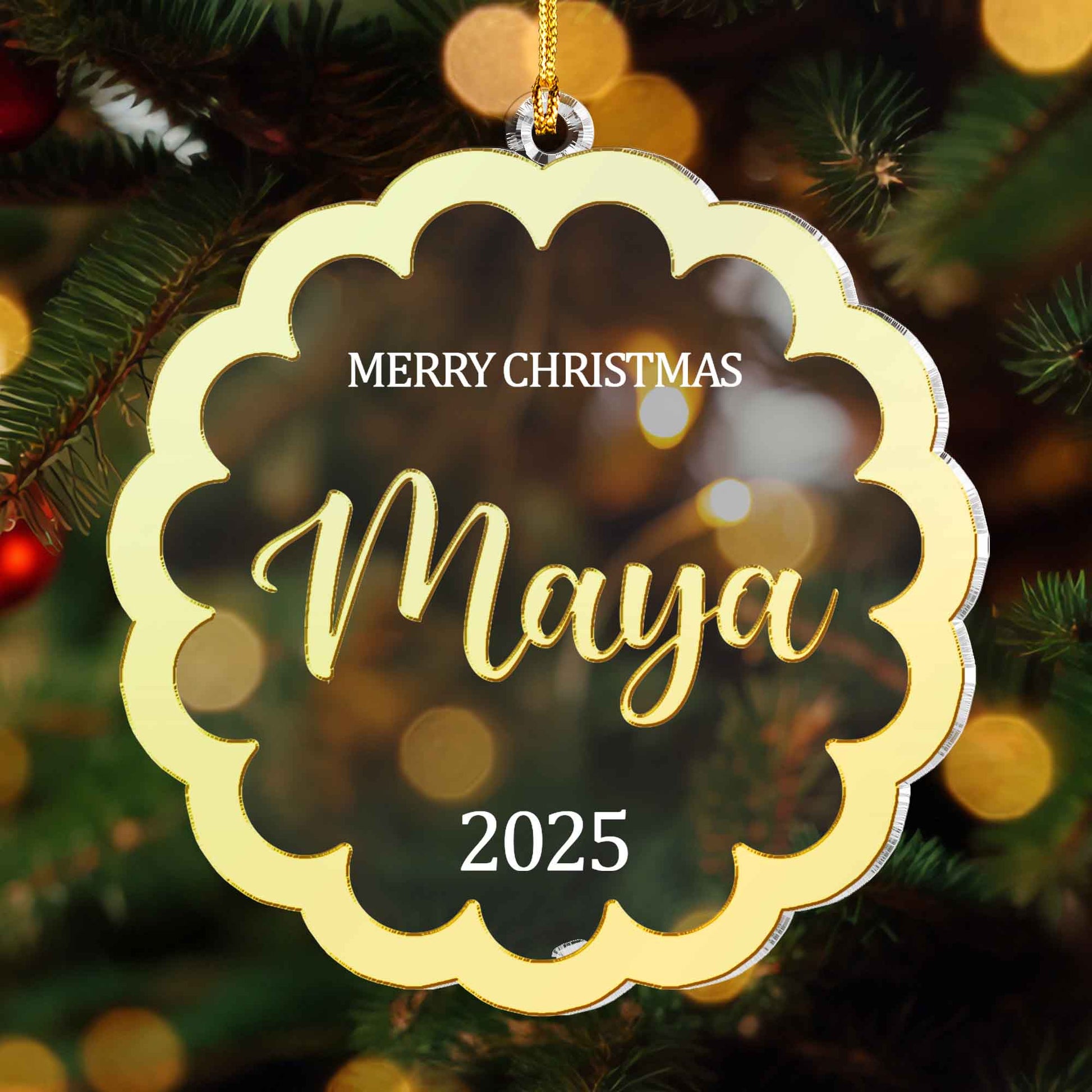 Our Personalized Floral Mirrored Acrylic Ornament transforms your tree into a reflection of love and joy. Each ornament is custom-engraved with your name and year, beautifully etched onto gleaming mirrored acrylic that captures the sparkle of every holiday light.
