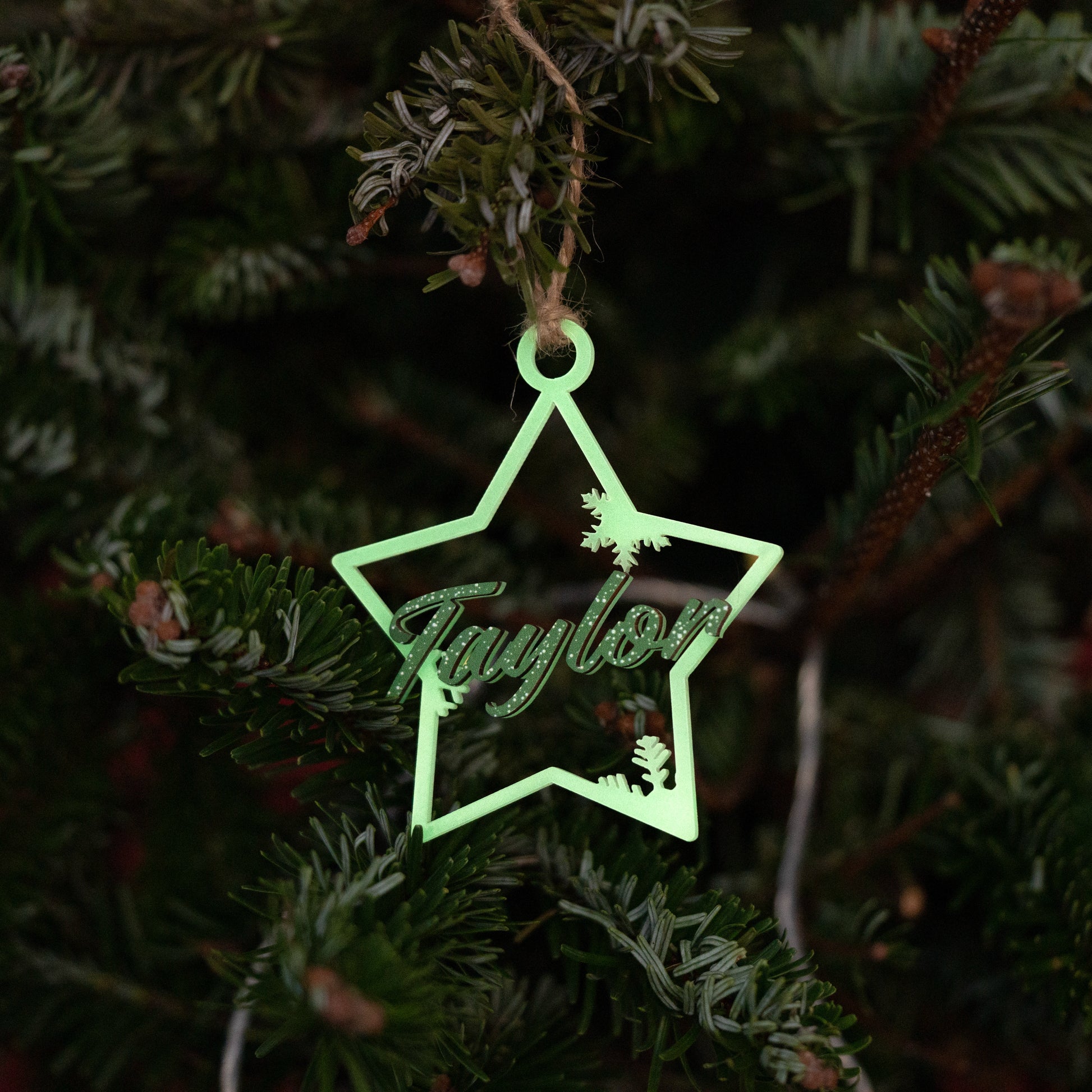 Bring a touch of magic to your Christmas tree with our Personalized Glow In The Dark Wood and Luminous Acrylic Star Ornament. Crafted with a blend of warm natural wood and radiant luminous acrylic, this ornament captures the spirit of the holidays — shining bright even after the lights go out.