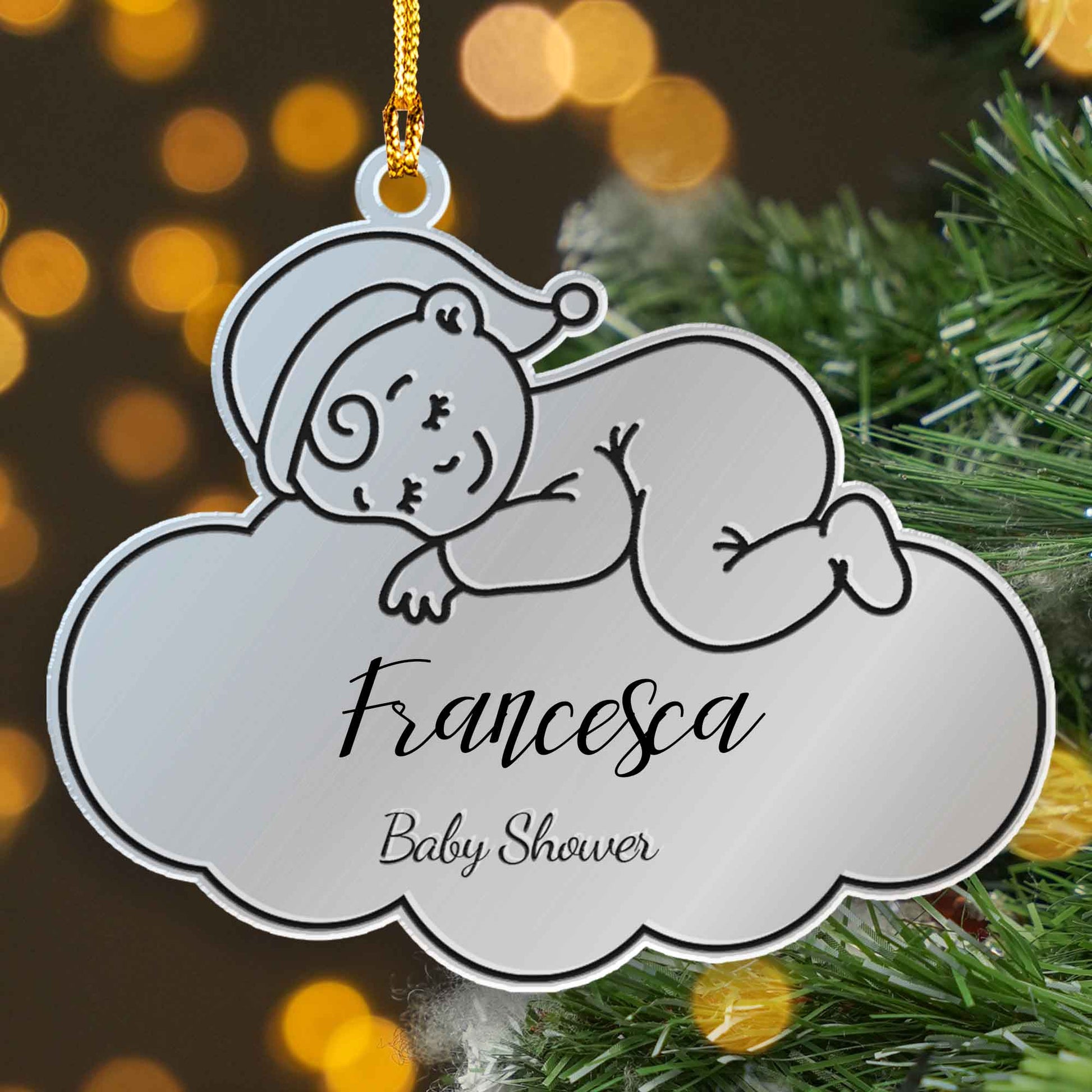 Welcome a precious little one with a keepsake that shines as brightly as their first smile. Famtify’s Personalized Mirrored Acrylic Cloud Ornament captures the tender beauty of new beginnings — a sleeping baby nestled on a soft cloud, symbolizing peace, innocence, and love.