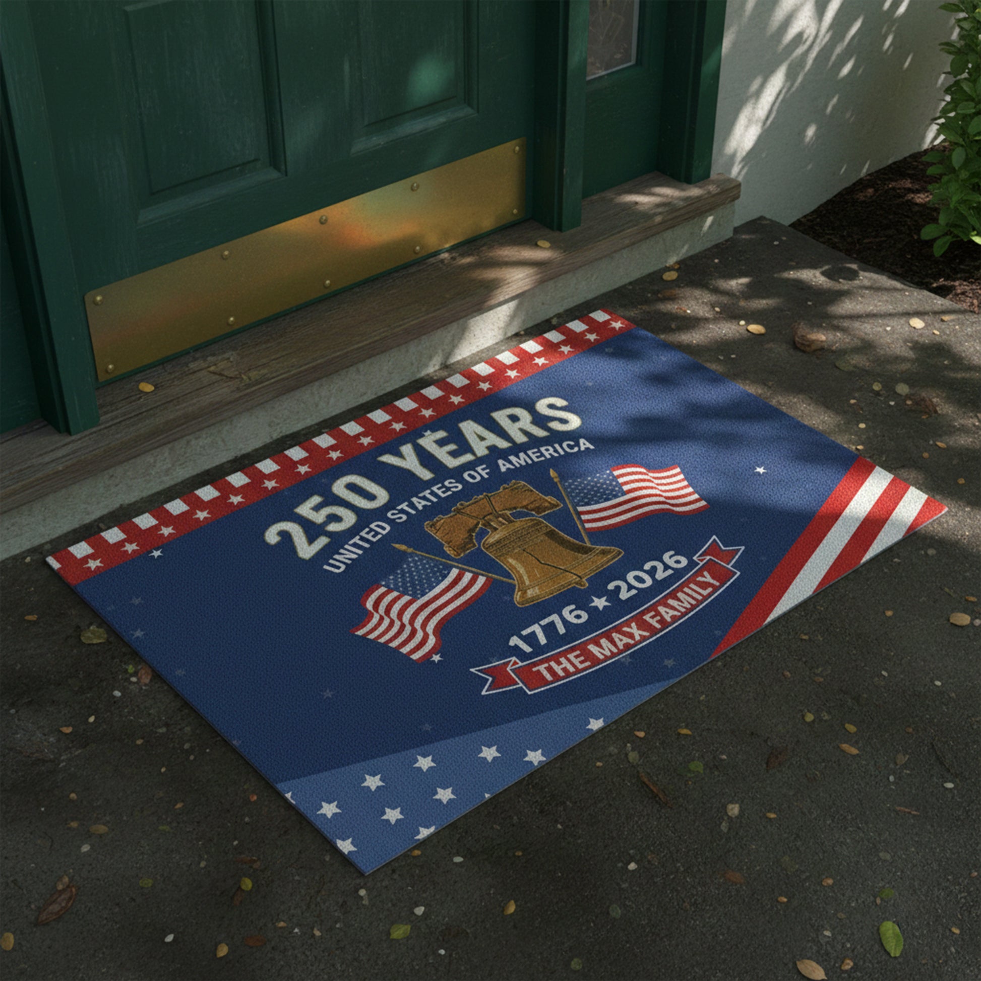 Featuring a timeless red, white, and blue design, this mat highlights the historic 250-year anniversary of American independence while offering the option to personalize it for your home. Adding your family name or a special touch makes it more than just decor — it becomes a family keepsake that reflects the love and pride shared within your home.